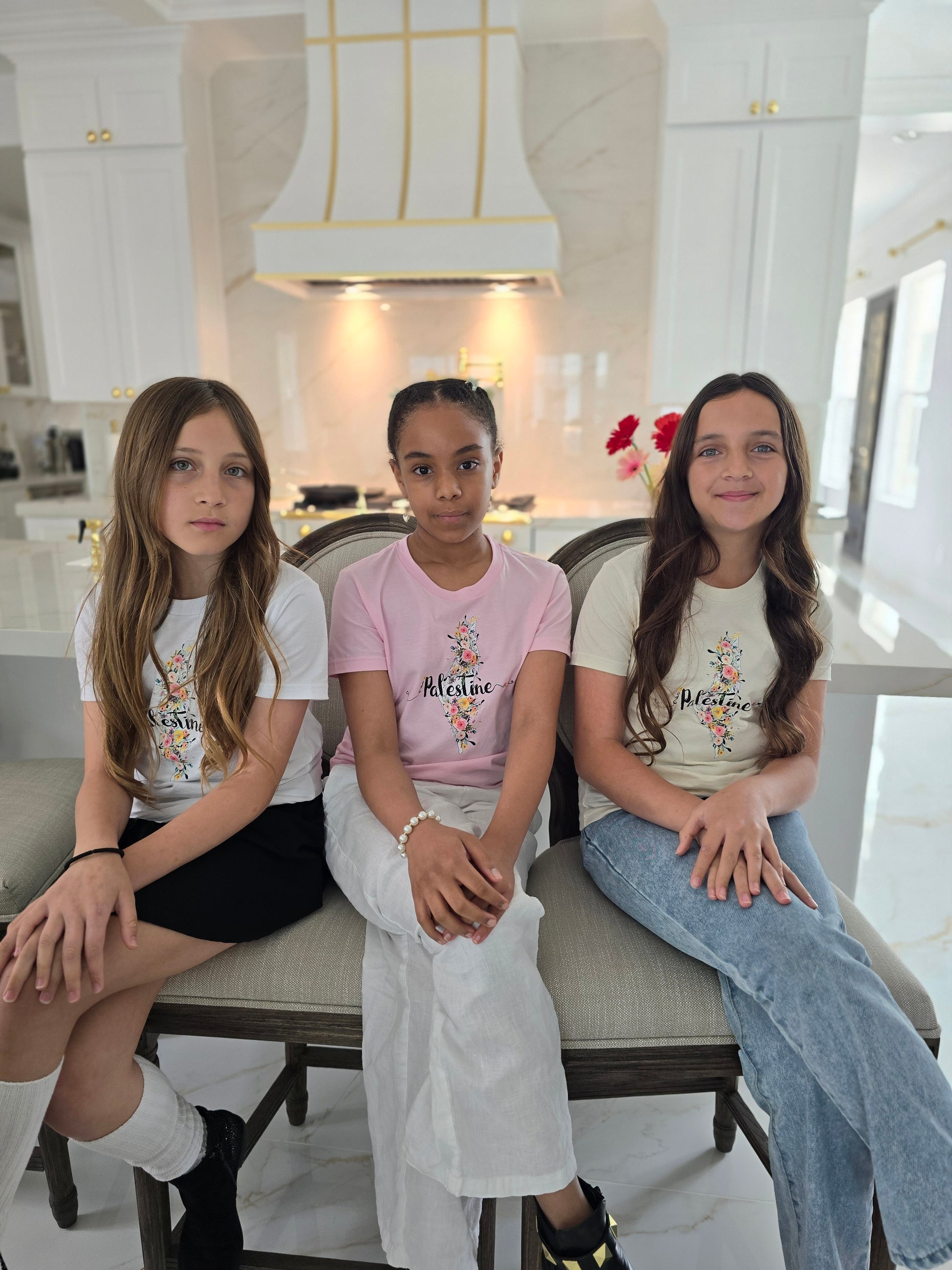 Show off your unique style and support for Palestine with our Floral Palestine Map T-Shirt. This beautiful design is sure to impress with its inspiration from our Hilwah logo, showcasing a stunning floral pattern and a map of Palestine. Effortlessly display your affection for Palestine while staying fashionable and cozy.